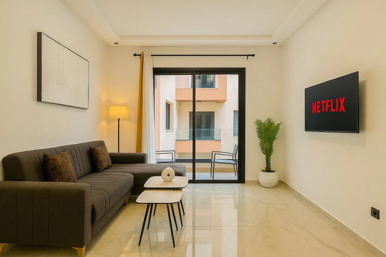 Bienvenue dans ce charmant studio cosy situé dans le quartier animé de l'Hivernage ! Parfaitement situé en plein centre-ville, cet espace moderne offre confort et praticité pour votre séjour de courte durée. Avec une décoration soignée, une kitchenette entièrement équipée et tous les équipements essentiels pour un séjour agréable, c’est un choix idéal pour les voyageurs en solo ou les couples. À quelques minutes des principales attractions, cafés et vie nocturne de Marrakech. Profitez du mélange parfait entre confort et emplacement !